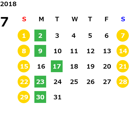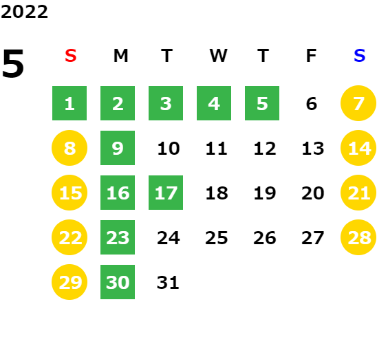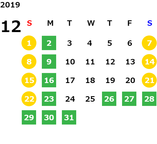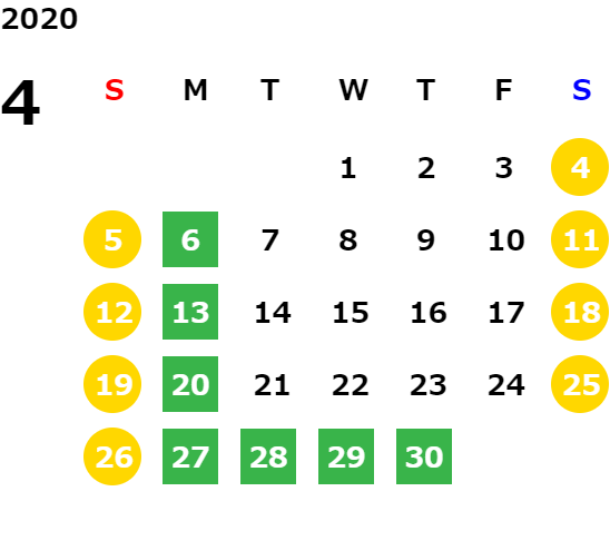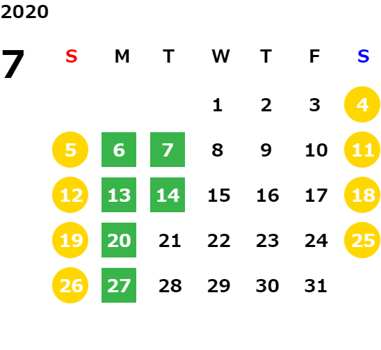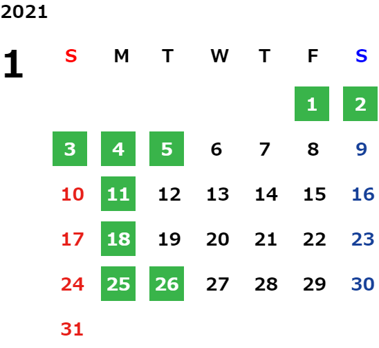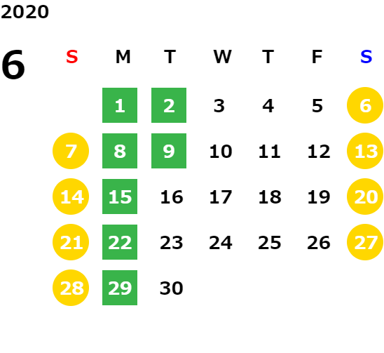 営業日カレンダー