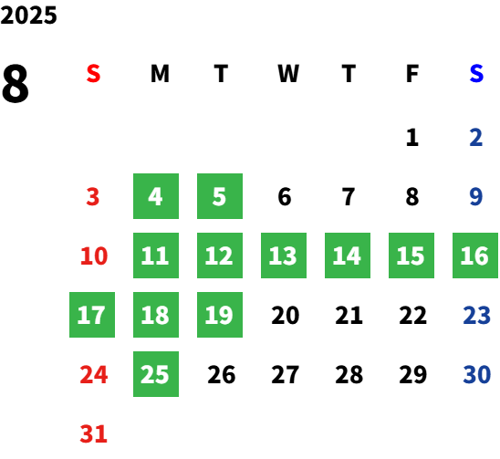 8月20日(水)より通常営業となっております。