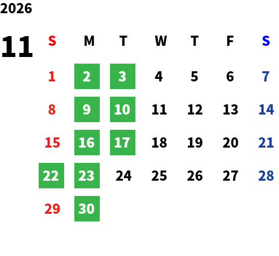 営業日カレンダー