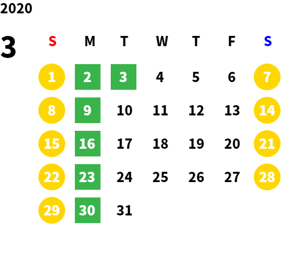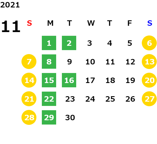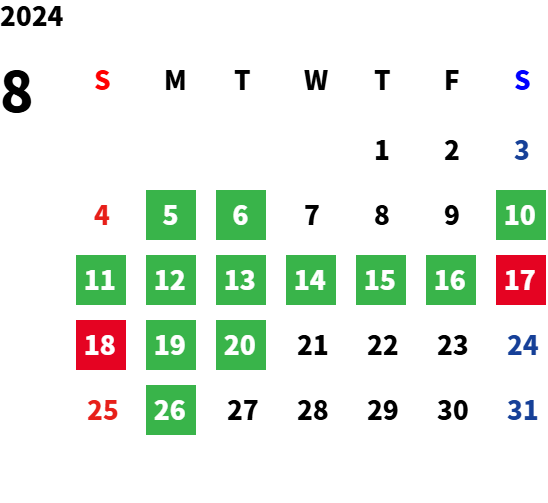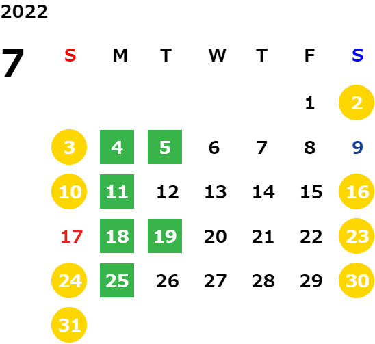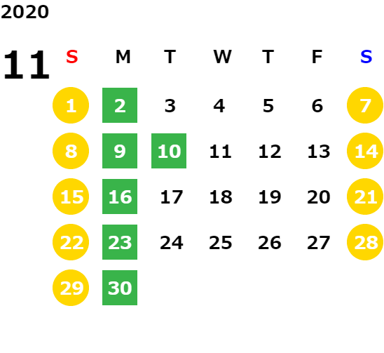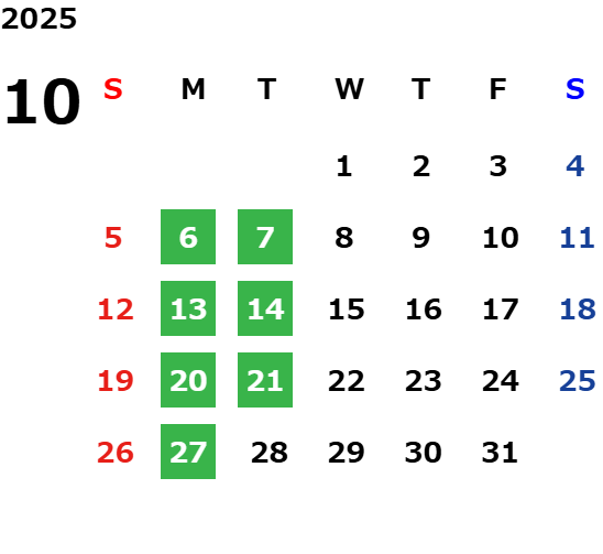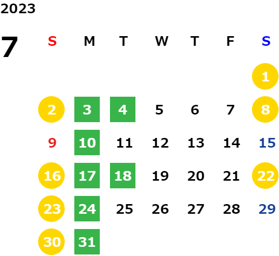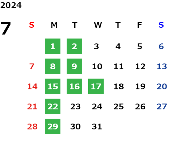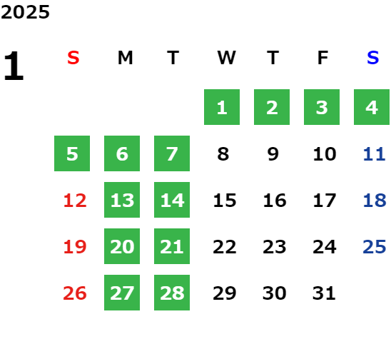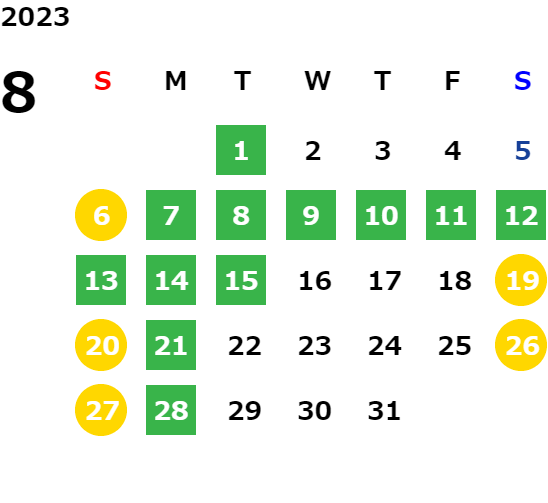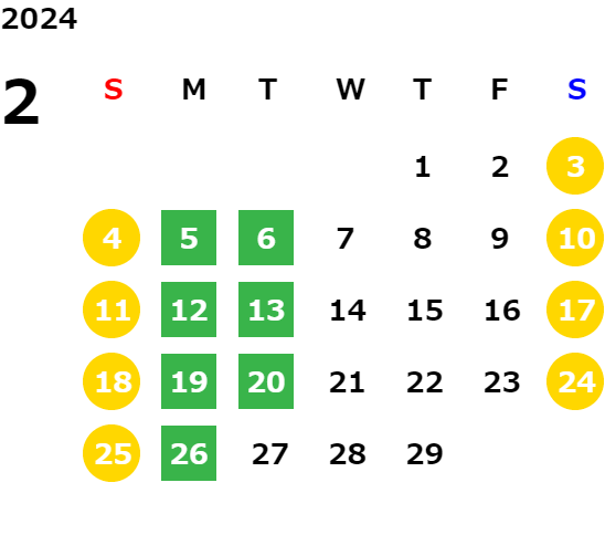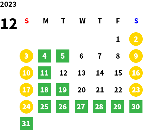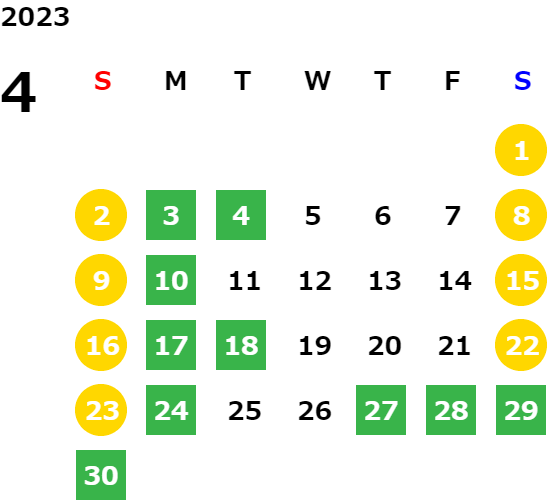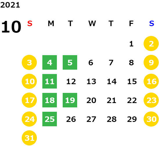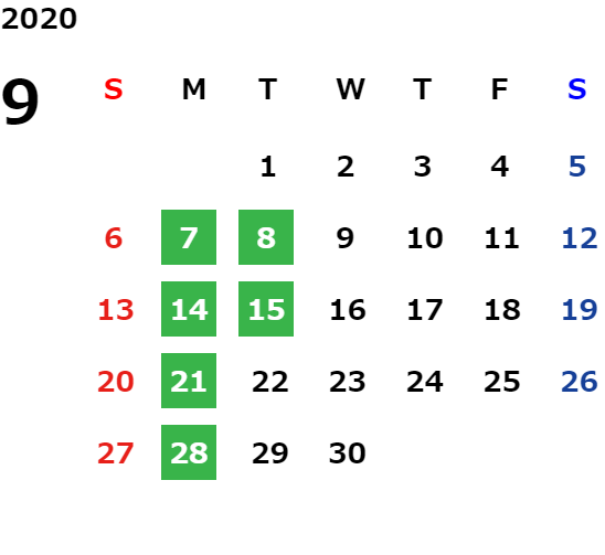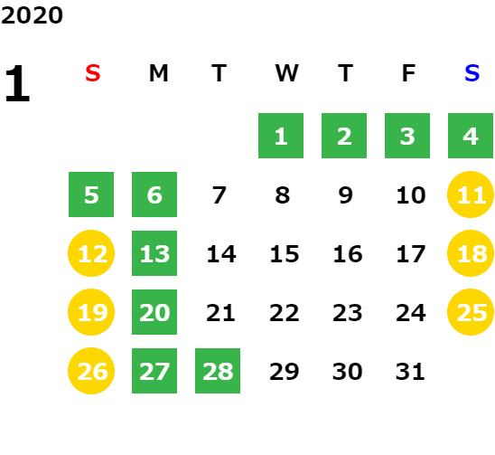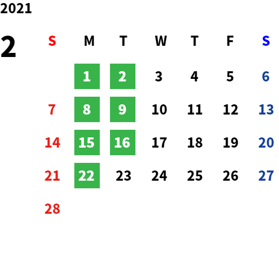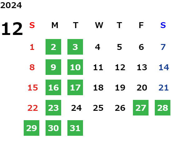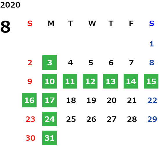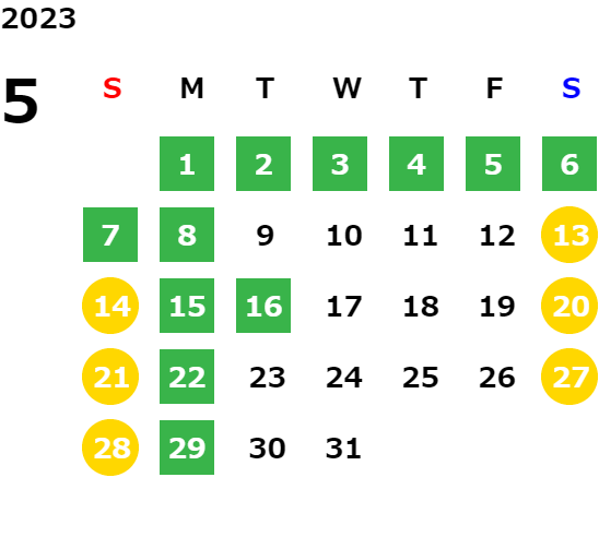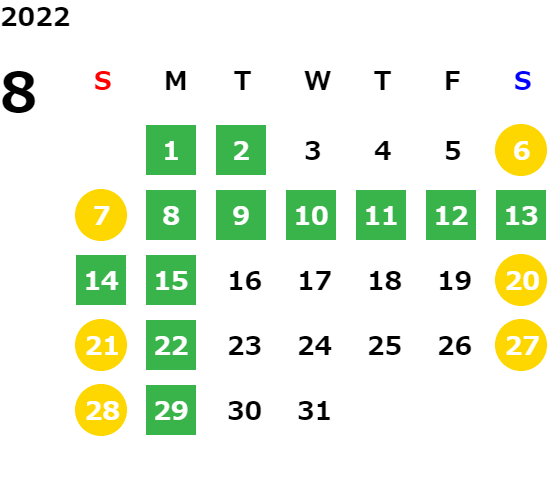 営業日カレンダー