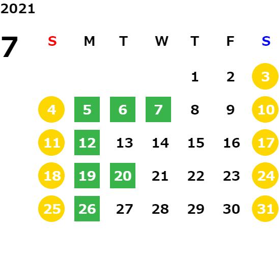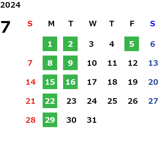 営業日カレンダー